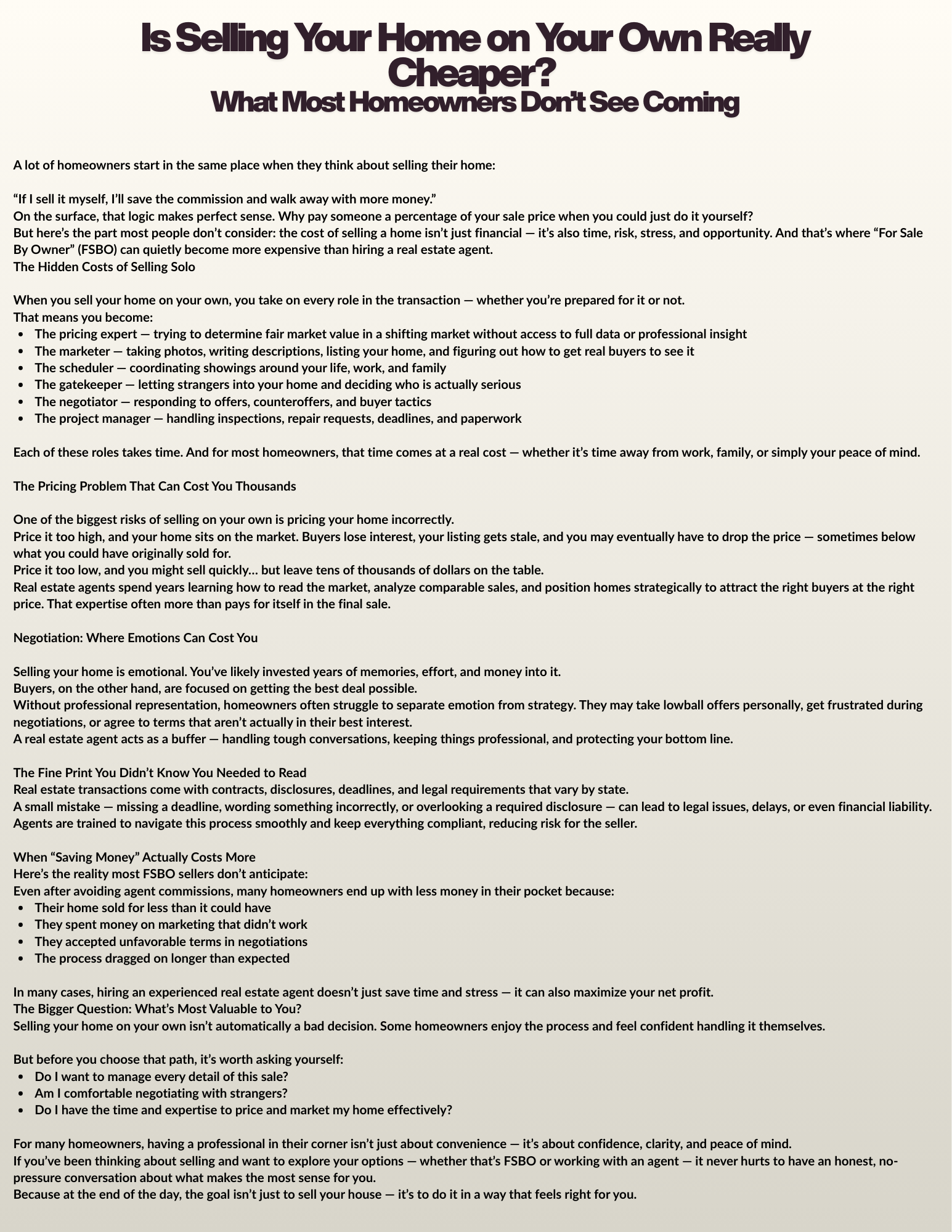 Blog > Is Selling Your Home On Your Own Really Cheaper?